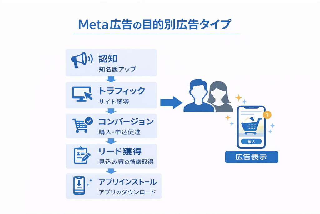 Meta広告には、目的に応じていくつかの広告タイプがあります。